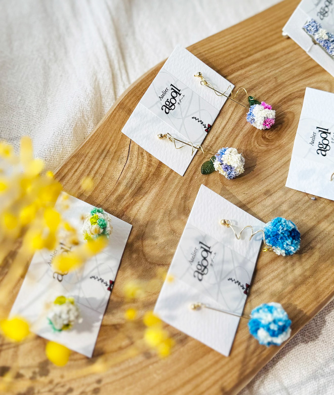 プリザーブドフラワーやドライフラワーを使用したアクセサリーは、
