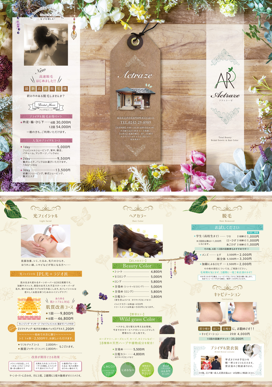 leaflet リーフレット Graphic Design– works – リーフレット作成 アクトラーゼ様パンフレットドゥミール様パンフレットプチボヌール様パンフレット会津若松ワシントンホテル様パンフレット坂内食堂様リーフレット生粋様メニュー